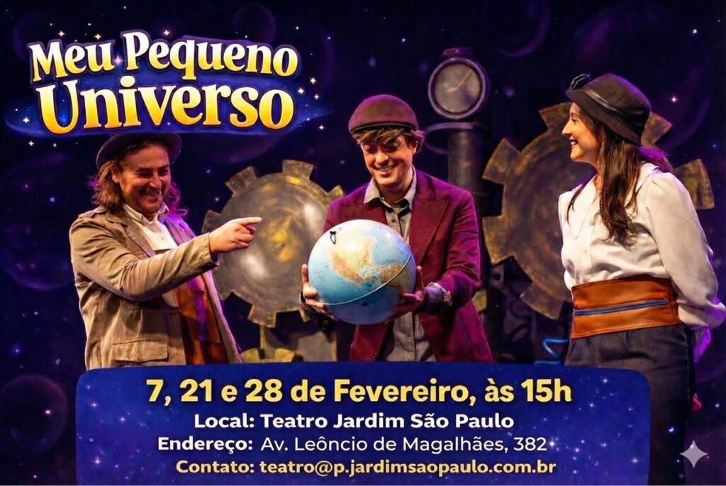 O Teatro Jardim São Paulo recebe nos dia 7, 21 e 28/02, sábados, às 15h, o espetáculo “Meu Pequeno Universo”.
